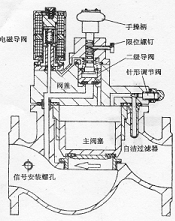3)、閥內(nèi)采用先進(jìn)的自潔式過濾器機(jī)構(gòu),可清潔進(jìn)入導(dǎo)閥內(nèi)的控制介質(zhì),以保證導(dǎo)閥的正常工作,降低了對(duì)工作介質(zhì)清潔度要求,并具有過濾器自身清潔之功能(Ф25、Ф50為濾網(wǎng)結(jié)構(gòu))。